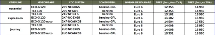 În funcție de echipare și de tipul de propulsie, prețurile pot ajunge până la 18.550 de euro (TVA inclus) pentru varianta Journey. Aceasta este echipată cu motorul ECO-G 120 și transmisie automată.