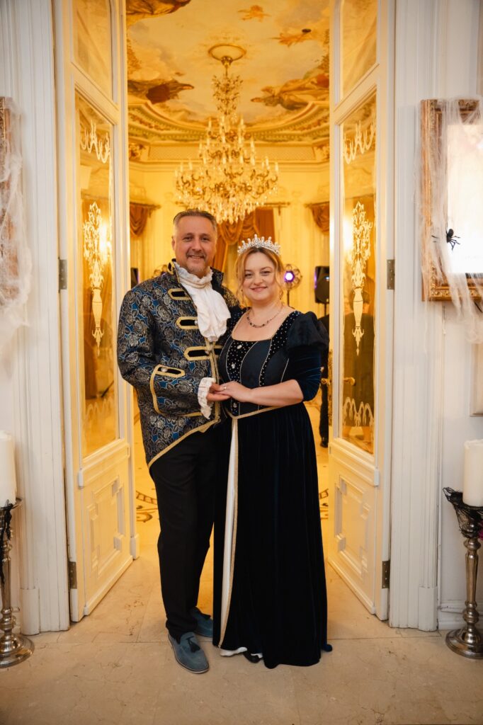 Loredana și Silviu Preda, fondatorii Noblesse Group, la evenimentul tematic „Ordinul Nobililor” organizat la Palatul din strada Sfinților nr.7