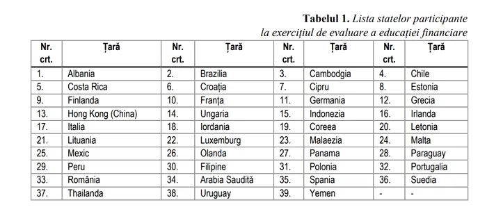 „Din totalul statelor incluse în studiu, doar 34% dintre respondenți au depășit pragul minim de 70 puncte pentru alfabetizarea financiară, iar în România doar 20% dintre respondenți au depășit respectivul prag. Cea mai bună situație s-a înregistrat în Germania, unde 75% din populație au depășit pragul minim de 70 puncte, iar cea mai deficitară în Yemen, unde doar 3% din populație au depășit scorul minim de 70 puncte.