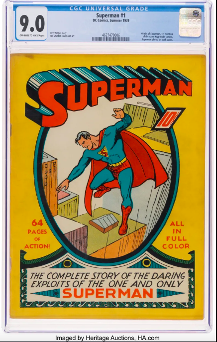 Un exemplar rar din Superman #1, păstrat din anii dintre Marea Criză și începutul celui de-al Doilea Război Mondial, a fost găsit în podul unei case din California. Revista a stabilit un record istoric la o licitație Heritage Auctions din Texas.